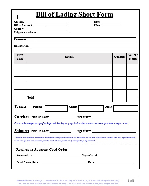 Shippers may also request a copy of the Non-negotiable Bill of Lading in advance. Having this document ahead of time allows the shipper to review the details and ensure everything is in order before the shipment arrives. It provides an opportunity to address any discrepancies or issues early on, facilitating a smoother transaction. The Non-negotiable B/L serves as an important reference for both the shipper and the consignee.