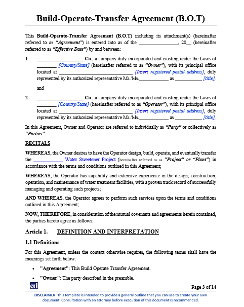 - Build-Own-Operate-Transfer Agreement (B.O.O.T)