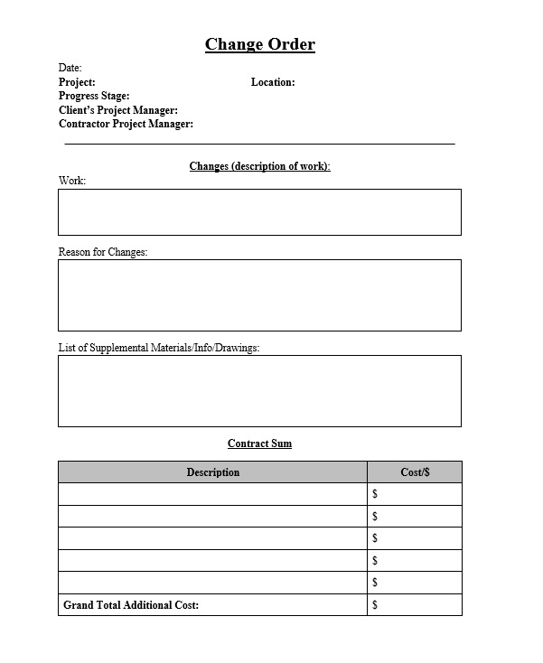 Change orders are vital for managing evolving project conditions. In cost-plus contracts, accurate cost documentation ensures that the contractor receives proper reimbursement while allowing the client to verify that all additional expenses are justified.