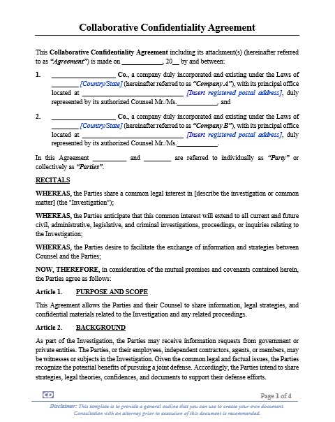 The Collaborative Confidentiality Agreement is a strategic tool for parties involved in shared legal matters. It allows effective collaboration while maintaining the confidentiality and privilege of their communications. This agreement ensures a unified defense approach and protects sensitive information from unintended disclosure.
