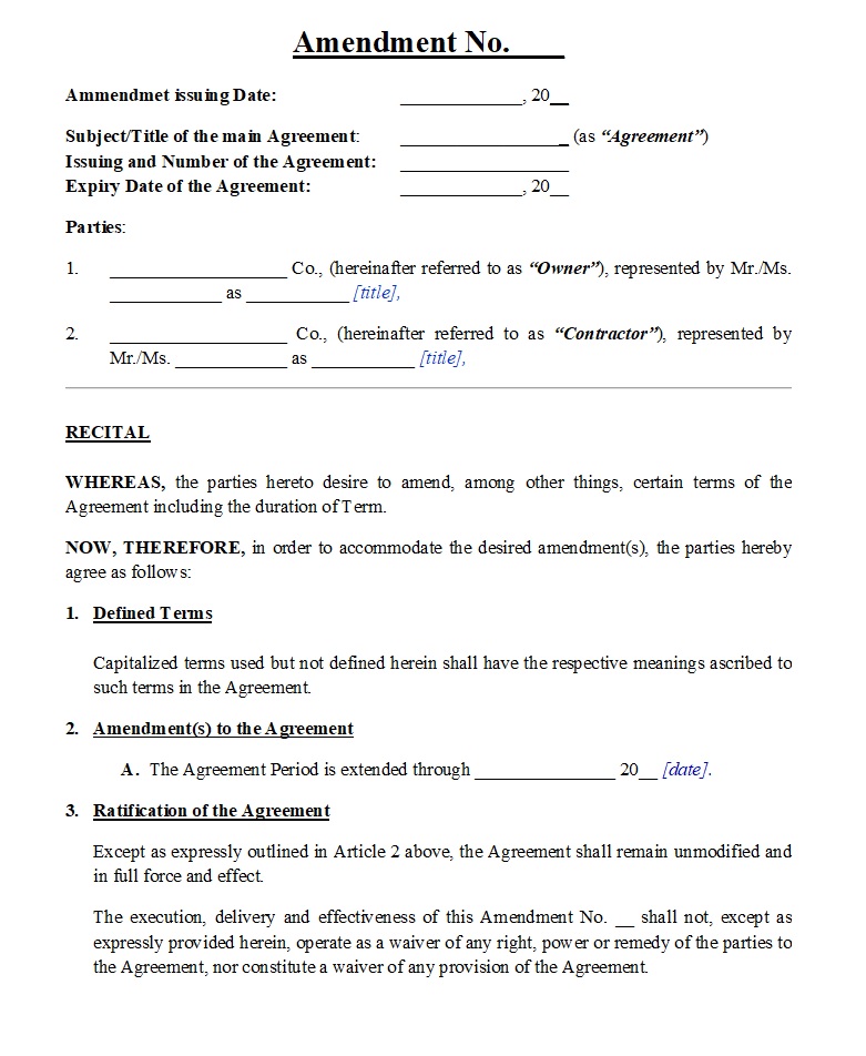 This pre-draft of “Contract Amendment” is in 2 pages.