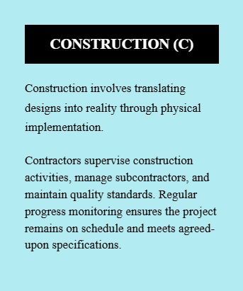 Construction transforms approved designs into a functioning asset. The contractor coordinates site activities, manages subcontractors, enforces safety and quality standards, and monitors progress against the schedule.
