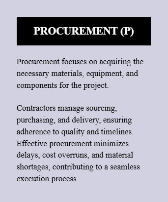 Procurement under an EPCF Contract manages the sourcing of equipment, materials, and services required for construction. The contractor controls supplier selection, contract negotiation, logistics, and delivery scheduling. Effective procurement protects the project against price volatility, supply delays, and quality failures. Because financing drawdowns often depend on procurement milestones, this phase directly connects technical progress with financial disbursement.