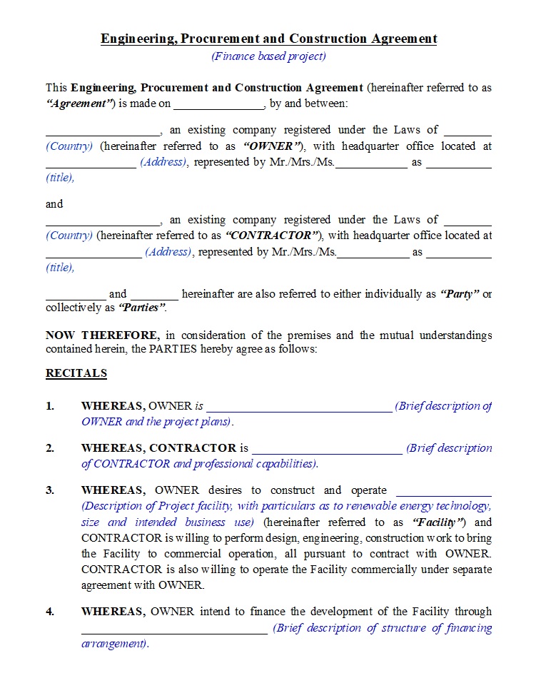 - Engineering, Procurement and Construction Contract (EPC)