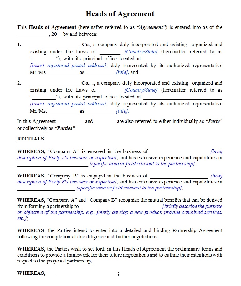 A Head of Agreement provides evidence that a deal is likely. Consequently, this ensures neither party wastes time or money. It signals a mutual intent to proceed with negotiations.