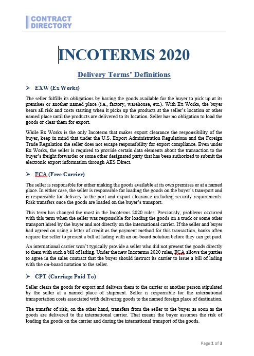 - FCA updated for sea transport: Sellers can now agree to provide an onboard bill of lading when goods are handed to the carrier.