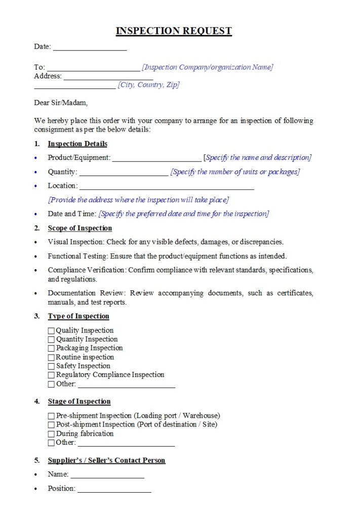 Without a documented request form, you risk ambiguity: what exactly was completed, by whom, when, and against what standard. Standard templates help ensure consistent data capture (project name, location, scope, attachments) and provide traceability. For example, template libraries show forms with structured fields for project info, request number, inspection type, and attachments.
