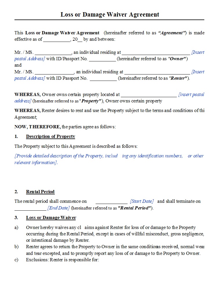 A Waiver of Liability Agreement sets clear expectations and protects both parties from potential disputes or misunderstandings. It outlines the specific circumstances under which each party may be liable or exempt from liability for any loss or damage during the rental period. This clarity is crucial for both the Owner and Renter to prevent any ambiguity or confusion about their responsibilities.