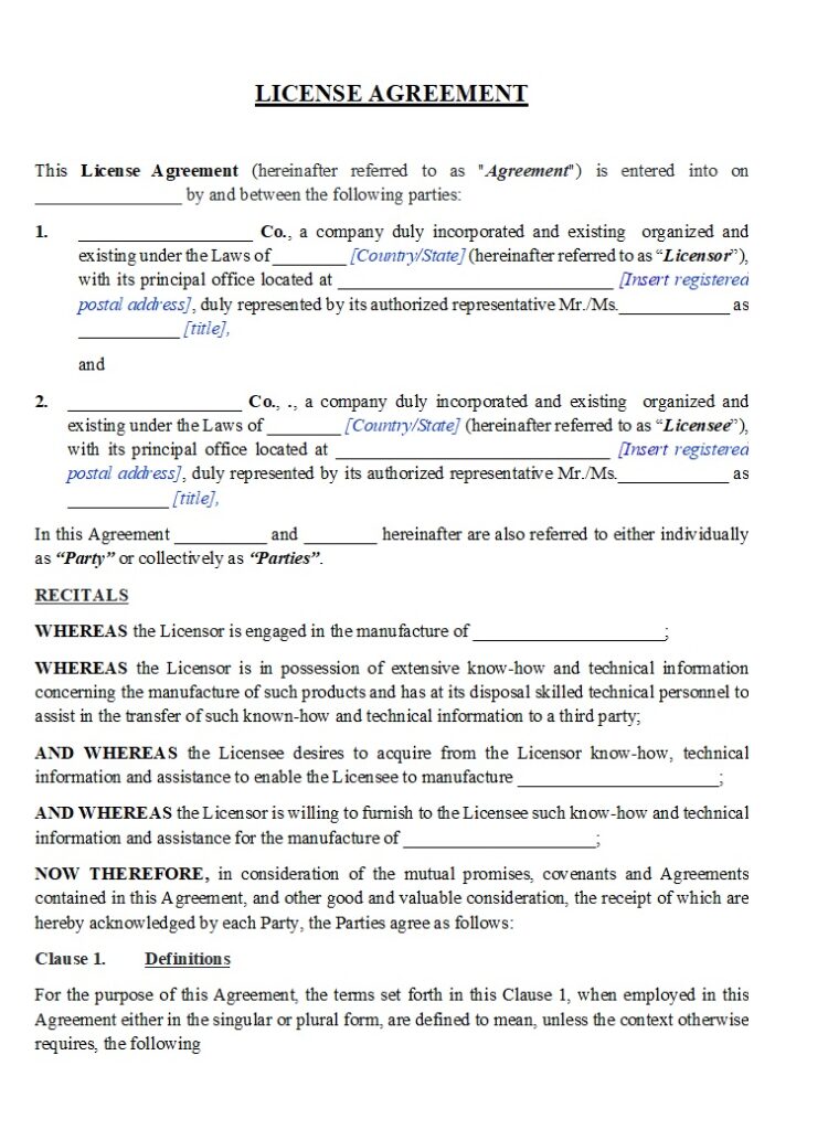 Here are the major components of most License Agreements (not only are each of these negotiable, they each are also non-mandatory; that is, a License might, or might not, have each one of these):