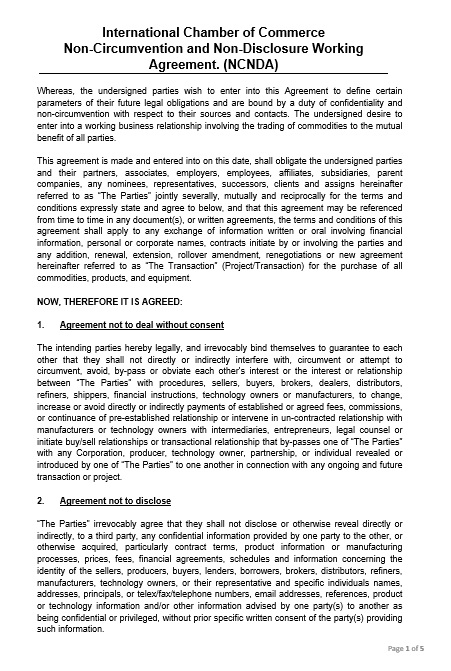 The ICC Non-Circumvention & Non-Disclosure Agreement is crucial in international business. It fosters trust and protects interests. Businesses should consider using an NCNDA in their transactions. It provides a solid foundation for successful and secure business relationships. The International Chamber of Commerce’s role in providing standardized drafts ensures consistency and reliability in these agreements.