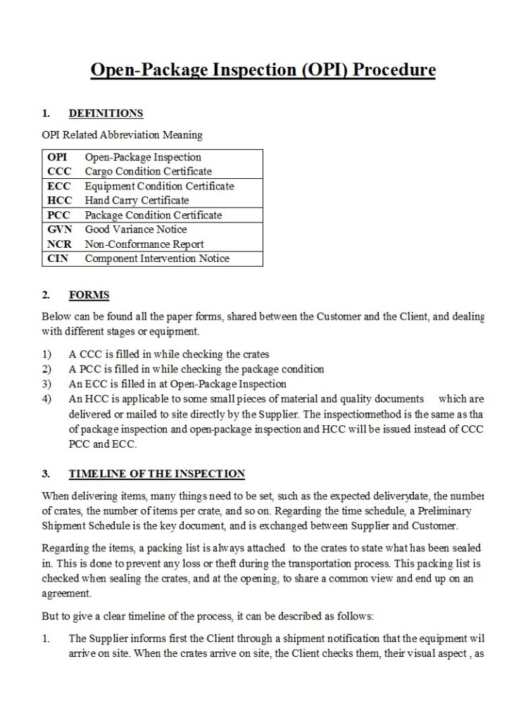 Open-Package Inspection Procedure (OPI) is a quality control process that involves the physical examination of packaged goods to detect any defects or deterioration that may not be apparent from external inspection and ensure compliance with regulatory requirements and good manufacturing practices (GMPs).