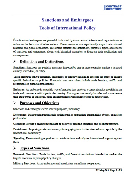 Sanctions represent deliberate actions by one or more countries against another state, individual, or entity to compel policy change or discourage unlawful behavior. They may target trade, finance, diplomacy, or defense sectors. Economic sanctions often take the form of asset freezes, export bans, restrictions on financial transactions, or prohibitions on investment. Their goal is to generate pressure without resorting to military conflict.