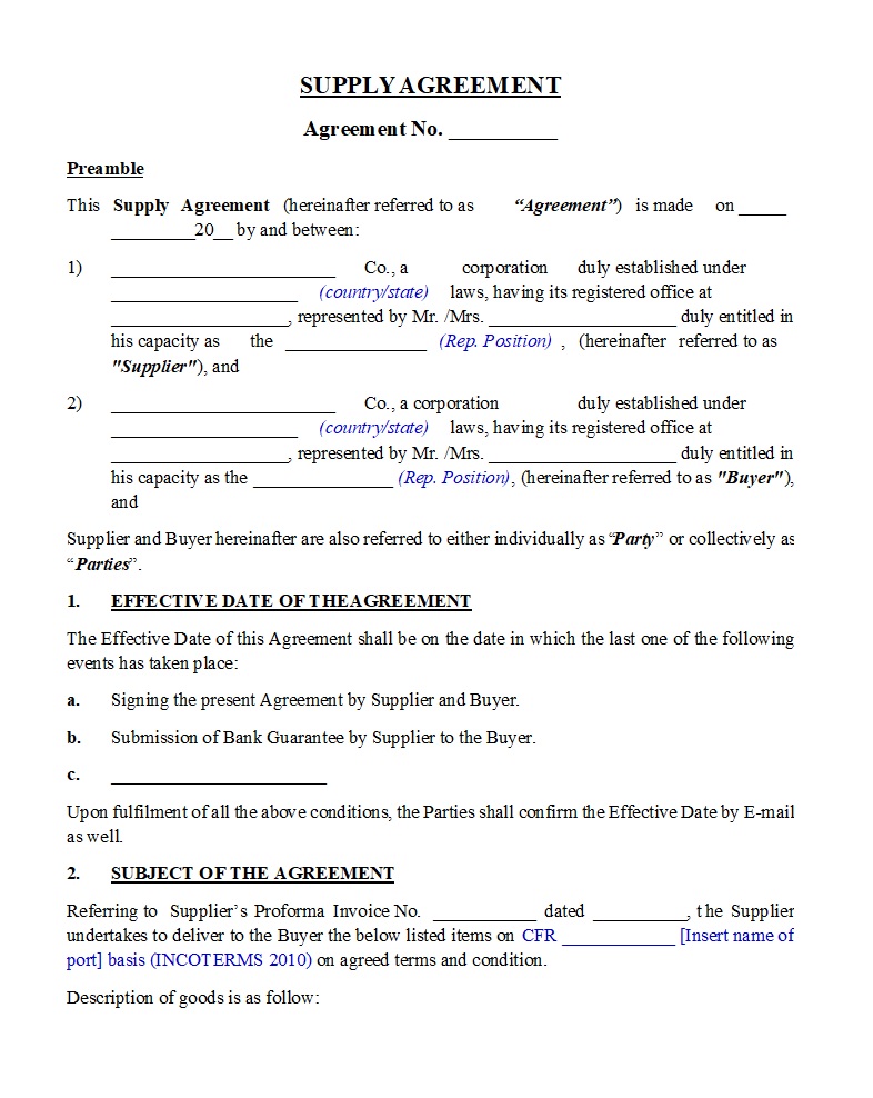 To function effectively and avoid disputes, a supply agreement should contain several essential clauses: